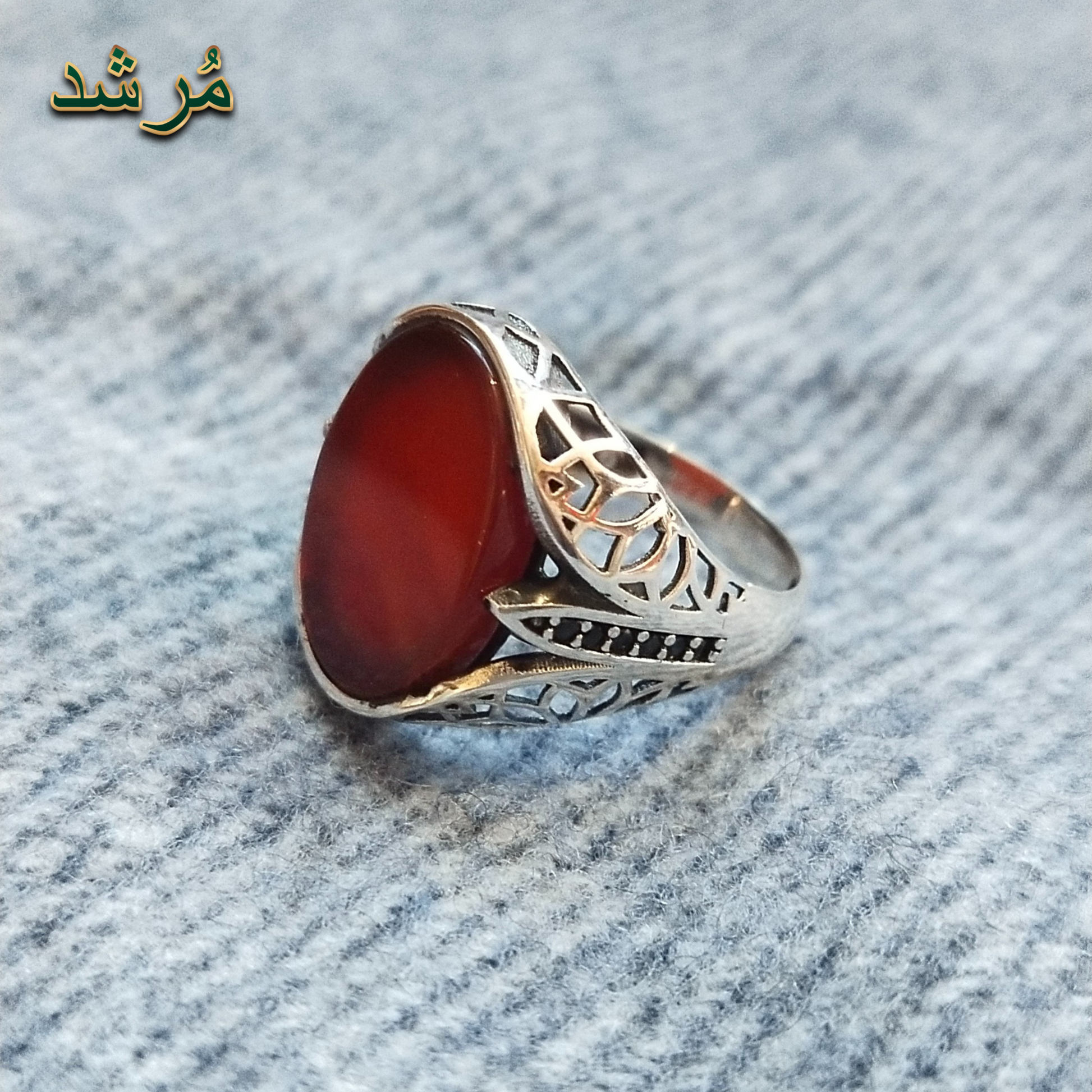 Showcase your refined taste with this exquisite Agate Ring, crafted in sterling silver and adorned with intricate leaf filigree details. The vibrant red agate stone radiates warmth and passion, making it a perfect centerpiece for this timeless design. The side patterns combine natural motifs with a bold masculine edge, creating a balance of elegance and strength. Whether for everyday wear or a special occasion, this ring is an ideal accessory for the modern man who values style and tradition.